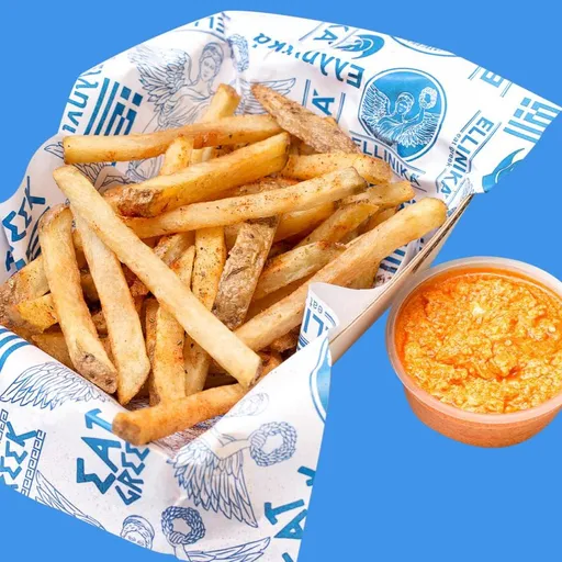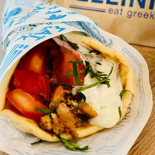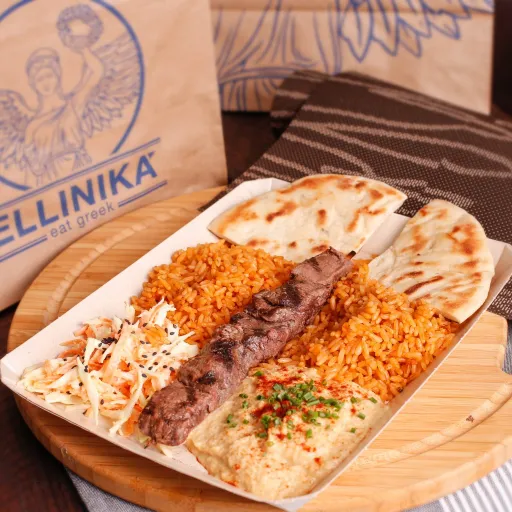 Carne de res, Tzaziki, cebolla, tomate & perejil.