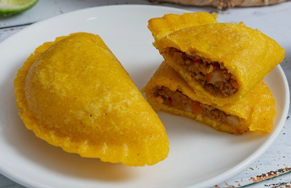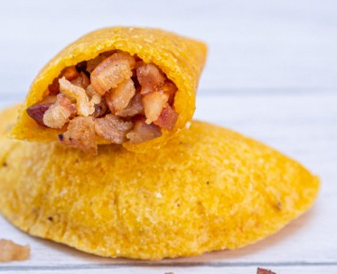 Una explosión de sabor con empanada rellena de trozos de chicharrón crujiente y queso fundido.