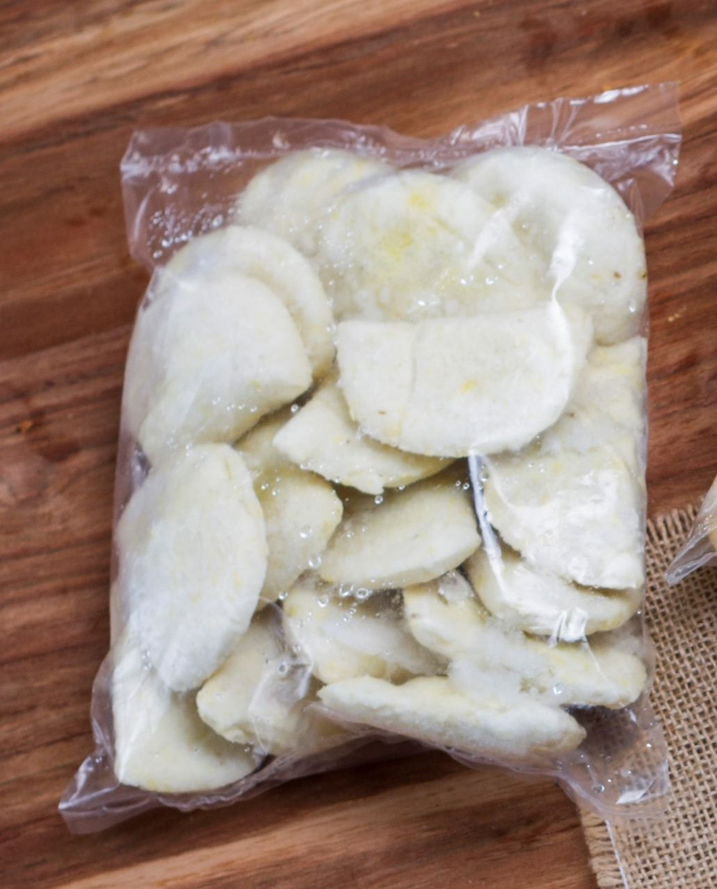 Bolsa de 20 empanaditas pre fritas, para preparar en casa. Masa de maíz rellenas de papa y maní.