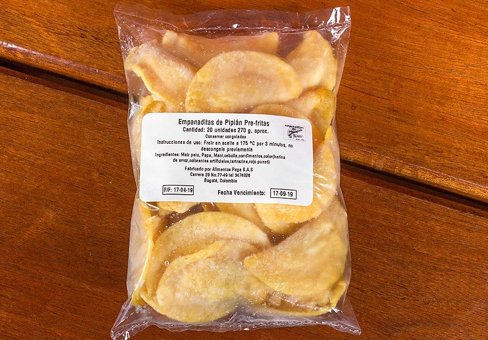 Bolsa de 20 empanaditas pre fritas, para preparar en casa. Masa de maíz rellenas de papa y carne.