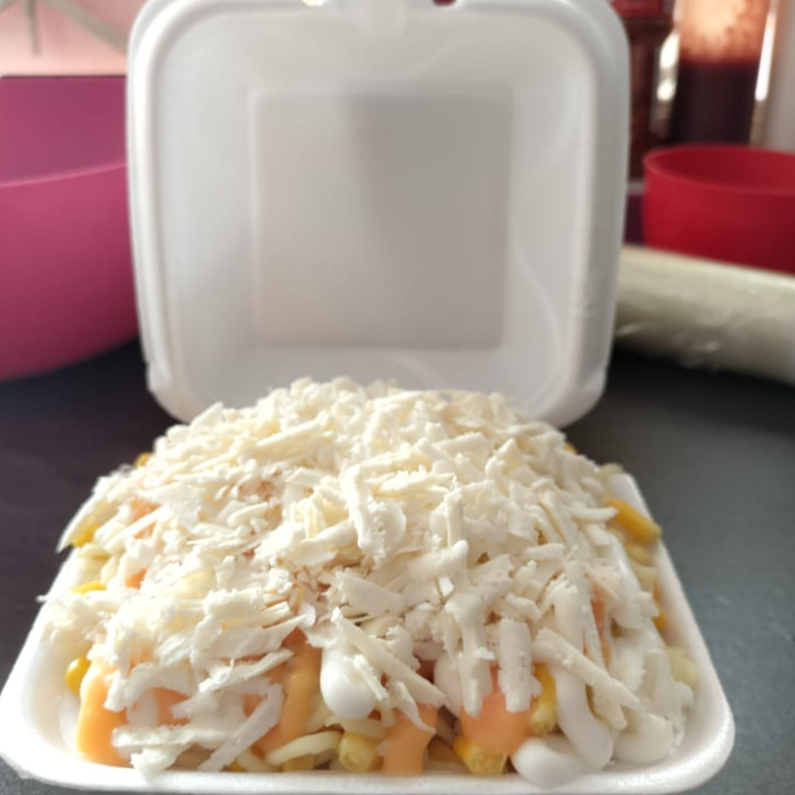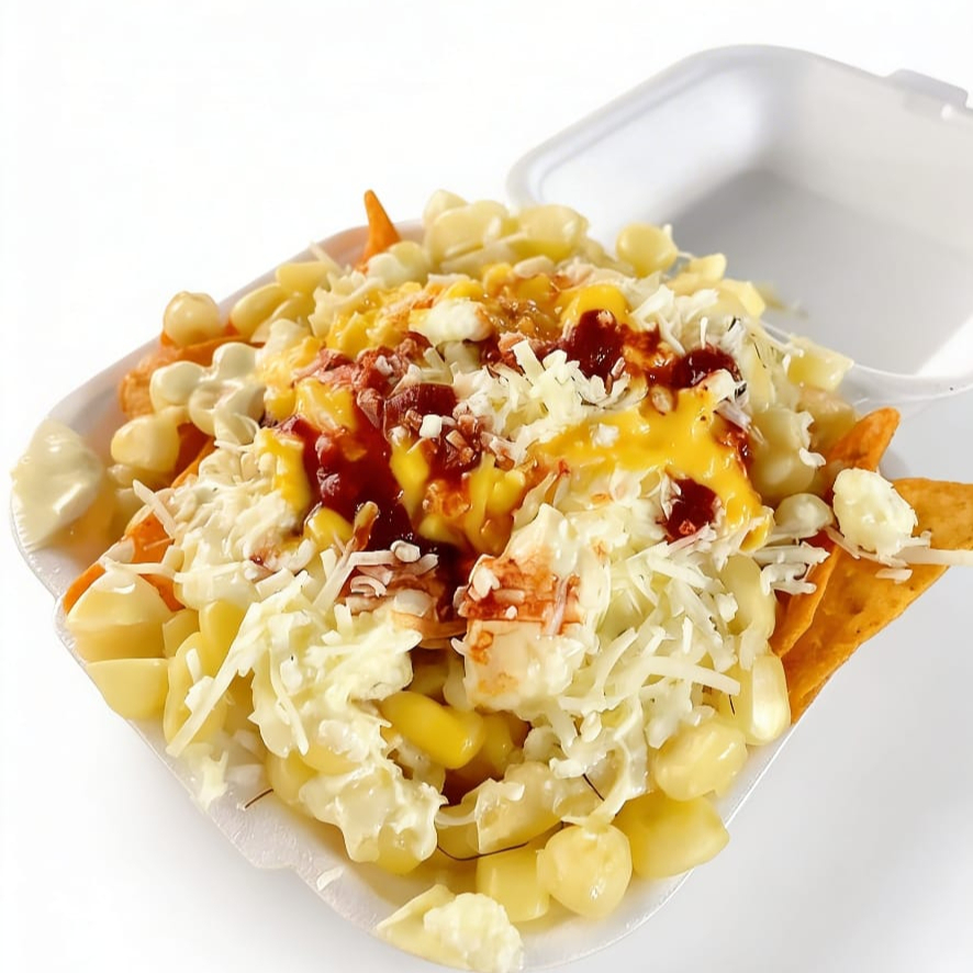 UN 1 Ramen con mazorca mexicana dulce y picosa, doritos de QUESO, queso blanco y amarillo, salsas Mayolimon, Chedar)