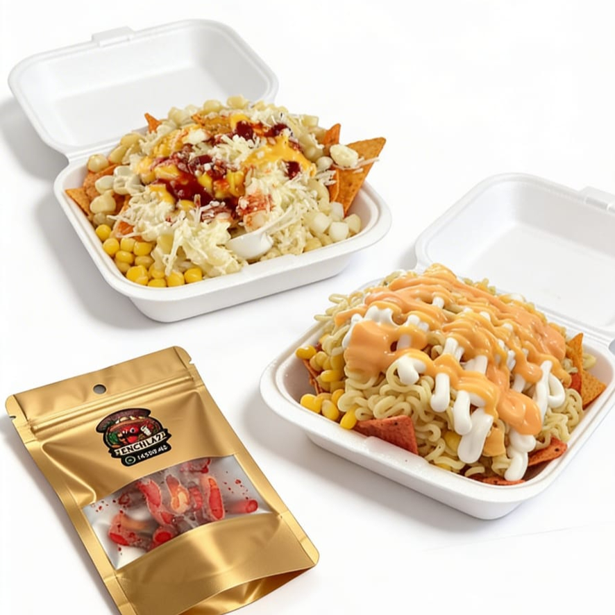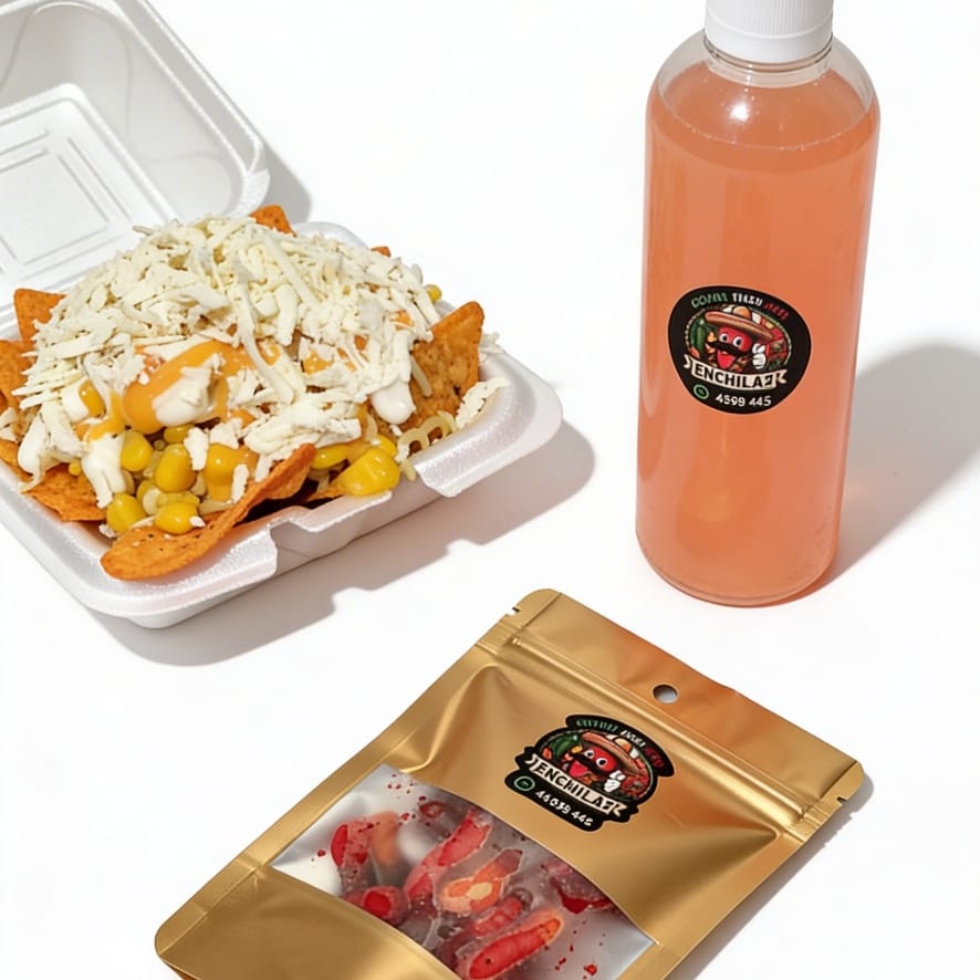 UN 1 Ramen con mazorca mexicana dulce y picosa, doritos Flamin Hot, queso blanco y amarillo, salsa Mayolimon, Chedar y Chiles en Polvo UN 1 Doriesquite(doritos de QUESO con mazorca mexicana, queso amarillo y blanco, salsas Mayolimon y chedar) y UNA 1 bolsa de gomitas enchiladas POCO picantes de 40 Gr