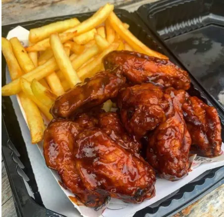 5 alitas completas bbq miel mostaza o picanticas francesas y ensalada gaseosa 400