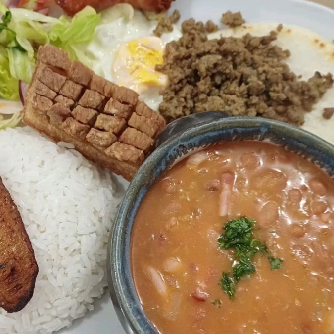 Frijolada Arroz Huevo Chorizo Chicharron Maduro