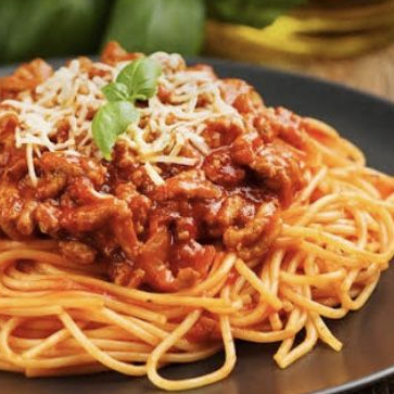 Spaghetti Bolognesa y Baguette