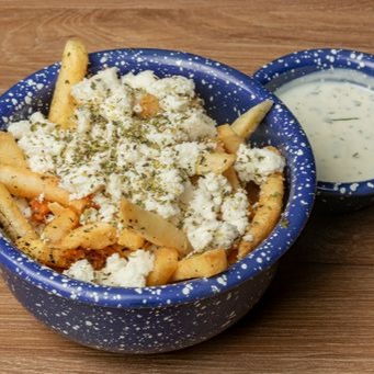 Papas fritas con queso feta y orégano (tamaño personal).