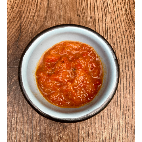 Salsa de pimentón asado hecha en casa (2 oz).