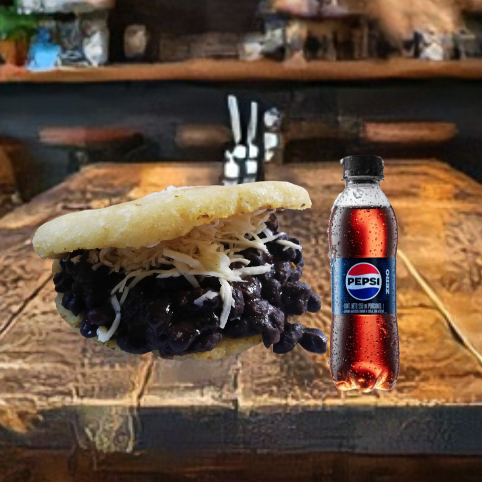 Arepa con Frijoles caraotas Negras, queso costeño + PEPSI 250ml
