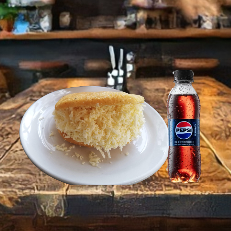 Arepa con queso costeño mas Pepsi zero 250ml