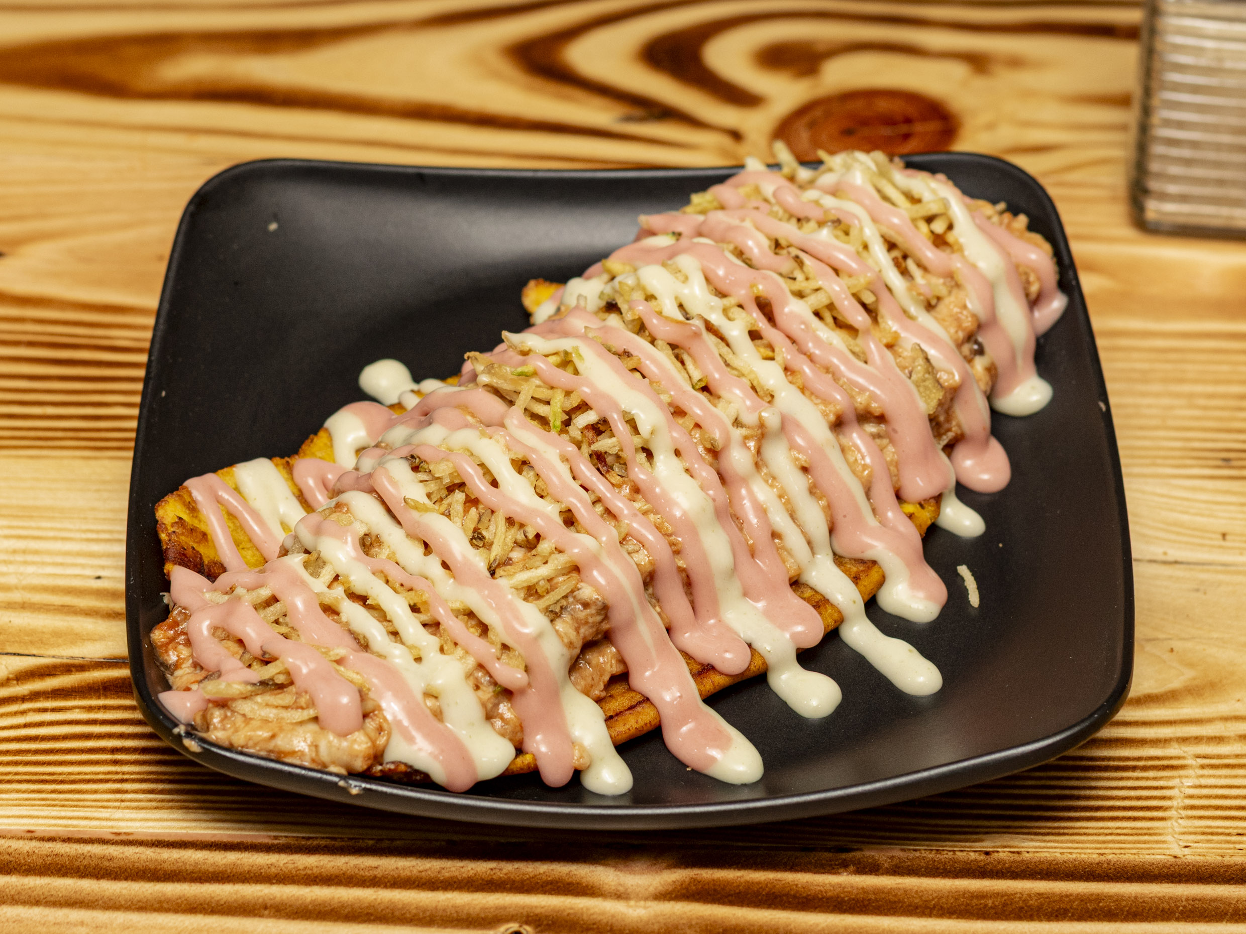 Maíz tierno, pollo, carne, chorizo, butifarra, queso, salsa de la casa.