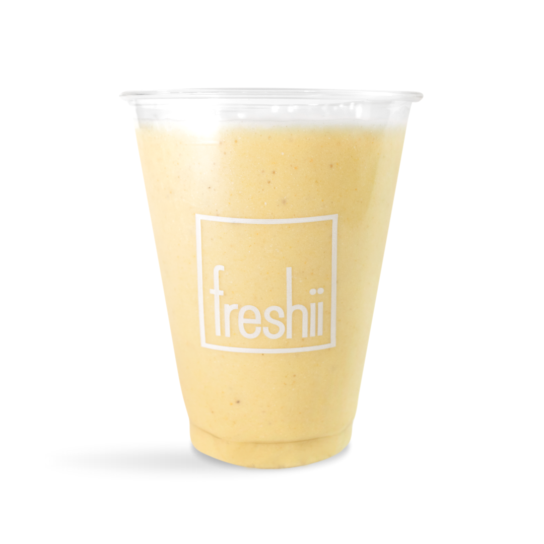 Leche de coco, banano, piña, mango, miel y curcuma (superalimento).