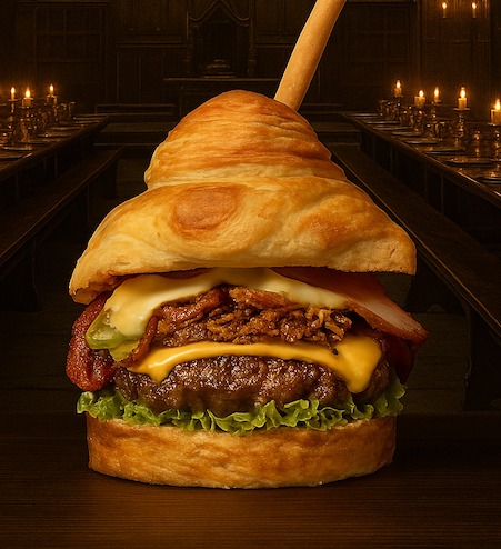 Pan hojaldrado tipo croissant, con un blend mágico de carnes asado a la plancha y pizcas de pimienta suprema, queso cheddar, tocineta hechizada con miel y polvos de canela, cebolla crocante y nuestra salsa hamburguesera relish...