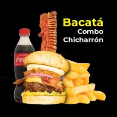 Hamburguesa de compota de cristales de papayuela, queso paipa, crema suave de maravilla, explosión de carne de res y cerdo, tocineta, pan blanco de orégano, tomate y lechuga, acompañado del chicharrón de la casa, papas francesas y bebida 500 ml.
