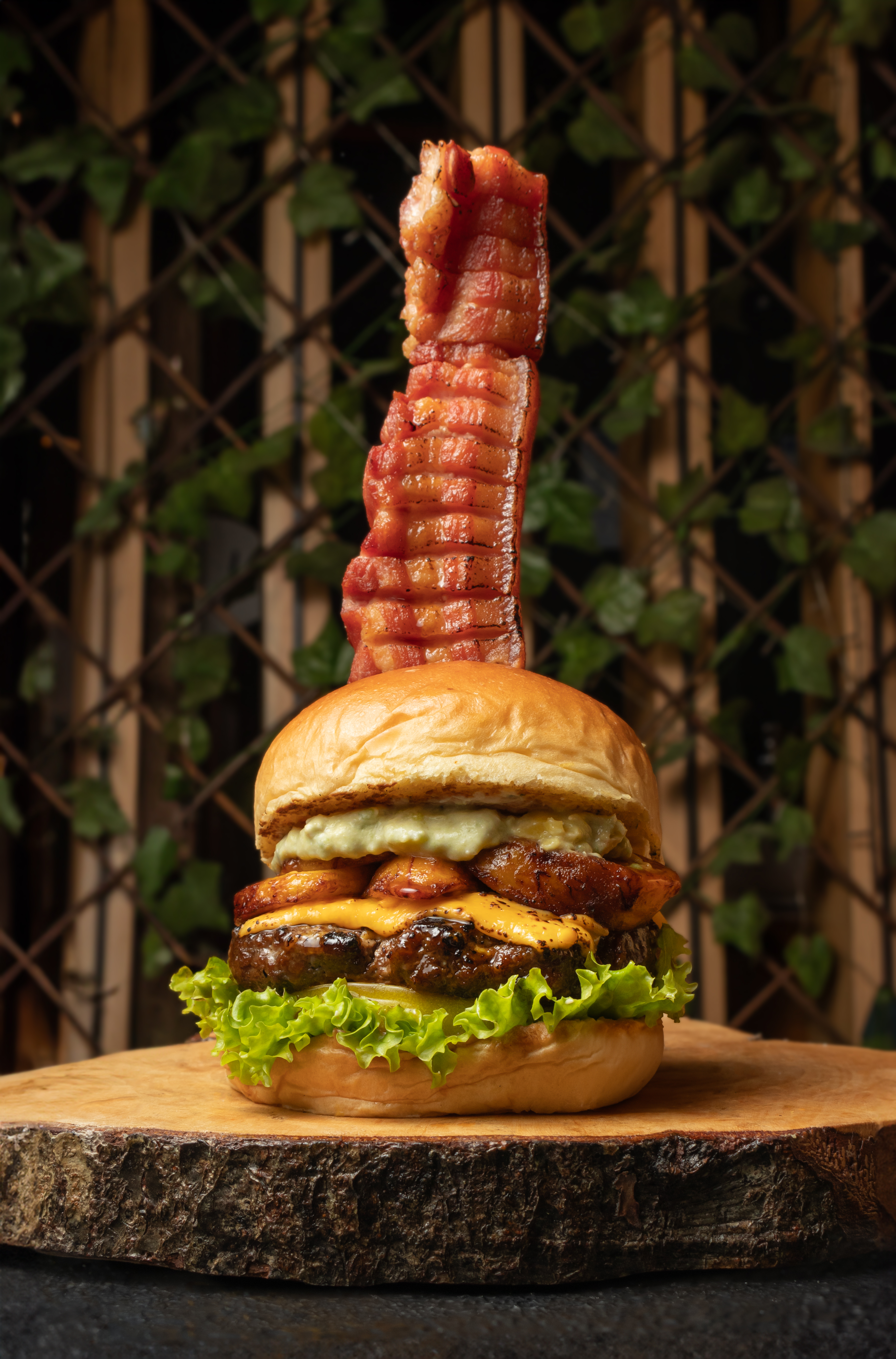 Hamburguesa 150 gr de angus beef artesanal, acompañado de queso cheddar premium, cebollitas artesanales caramelizadas, tocineta crunch, garden cheese de la casa, pan brioche con mantequilla finas hierbas y vegetales frescos de tierras cercanas, es la participante oficial BM19.
