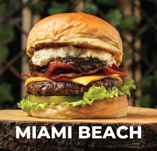 Miami ultra burger festival sunshine!, 150 g de angus beef artesanal, acompañado de queso cheddar premium, cebollitas artesanales caramelizadas, tocineta crunch, garden cheese de la casa, pan brioche con mantequilla finas hierbas y vegetales frescos de tierras cercanas, es la participante oficial bm19 mas chicharrón de la casa siempre perfecto.