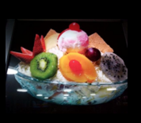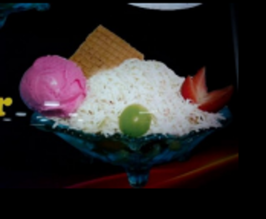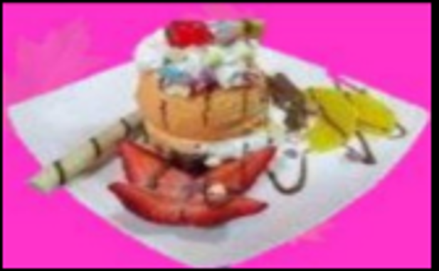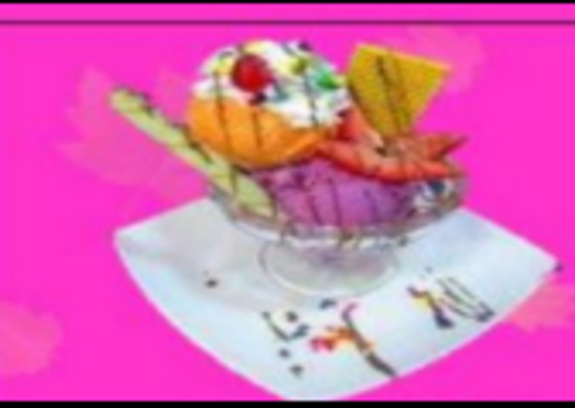 Deliciosa copa de helado especial con crema de leche, decorada con fresa, kiwi, durazno, uva ó ciruela, 5 porciones de helado con los sabores que estén disponibles en el momento , 2 barquillos y galleta, salsa de mora