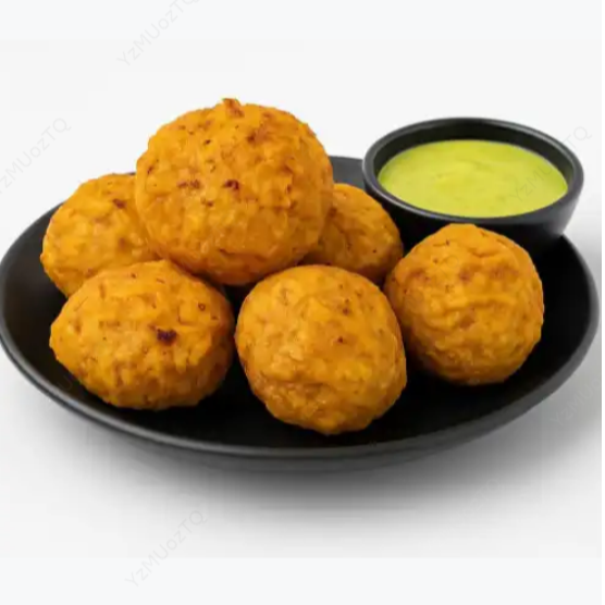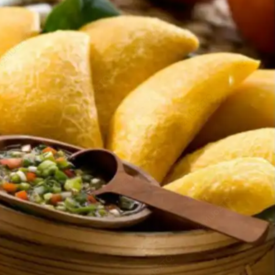 Crujiente empanada de masa de peto rellena con una sabrosa mezcla de arroz y carne y pollo.