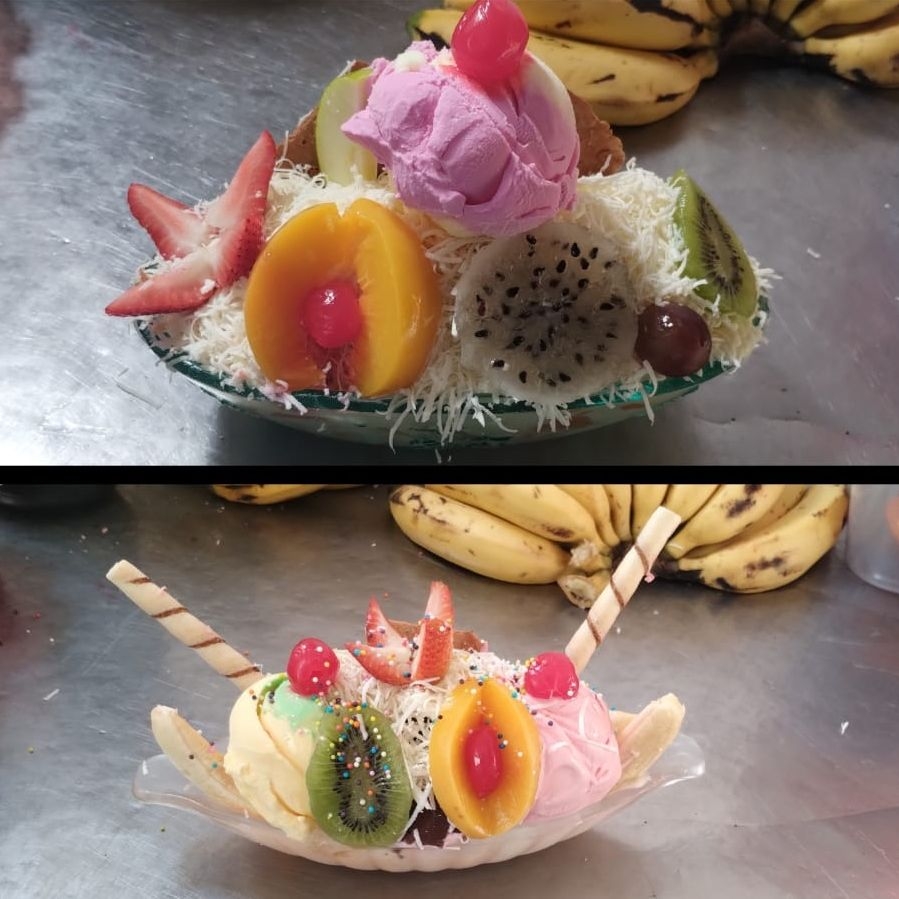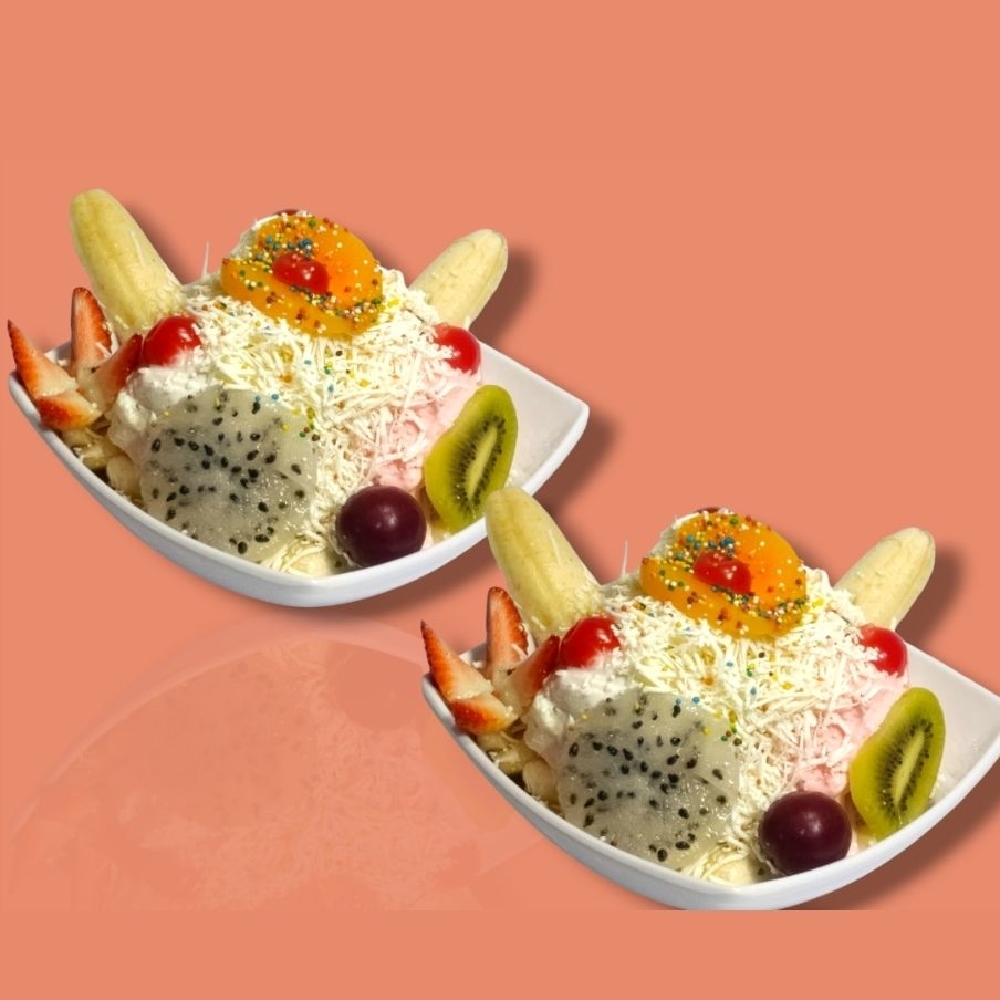 Ensaladas de Frutas Especial y Banana Split 600 gramos cada una.