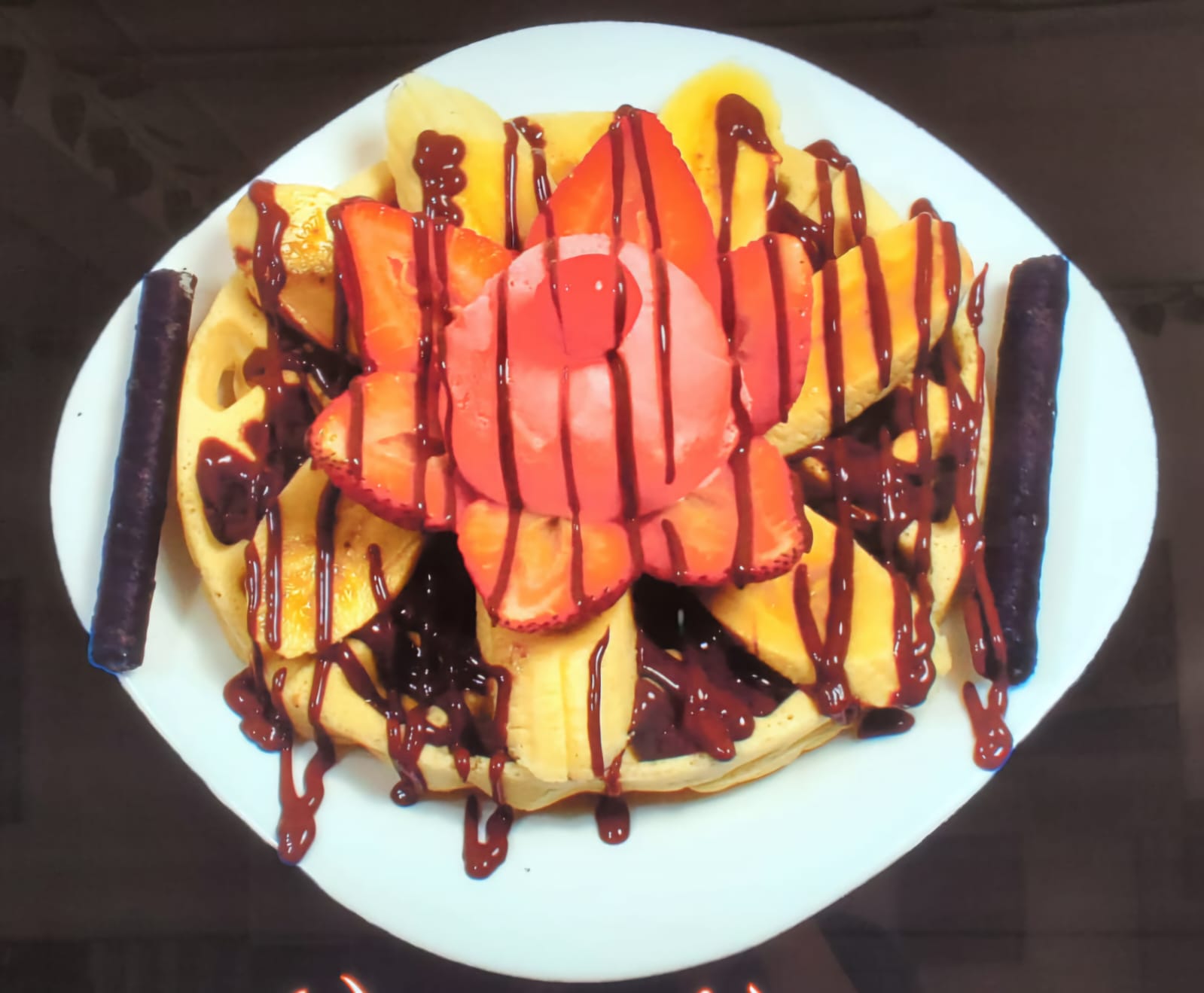 Waffle de Nutella Waffle banano fresas helado cereza barquillos
