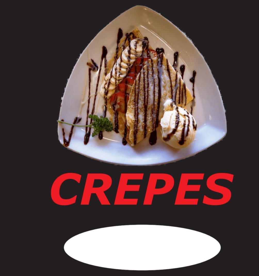 Tortilla de crepes con Nutella o arequipe con fresa y banano helado crema Chantilly y salsa de chocolate o fresa