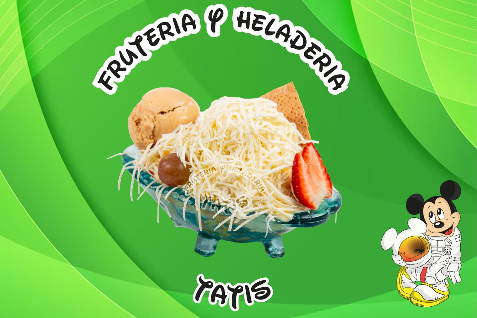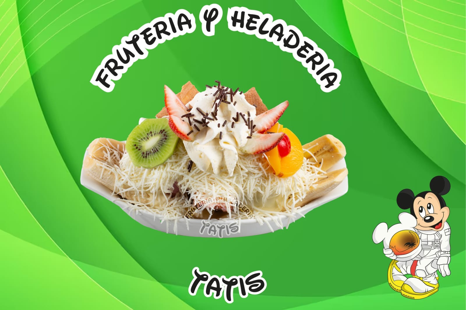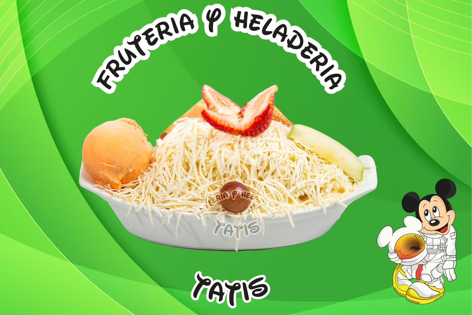 Picado de frutas: mango, fresa, banano, papaya, piña, manzana crema, queso, 2 porciones de helado, durazno, barquillo, brevas, gelatina, crema de chantilly, galleta Oreo, masmelo, kiwi, higo, uva, fresa, galletas miel y salsa de mora.