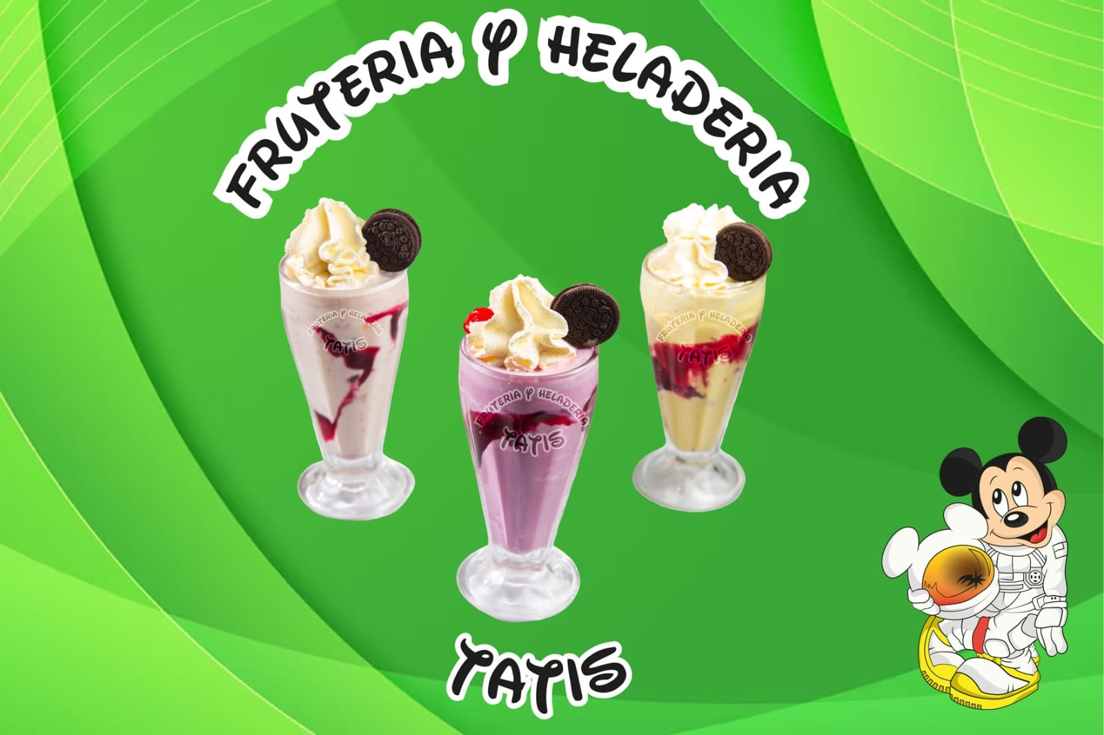 4 Porciones de helado, durazno, kiwi, cereza, crema de leche, crema chantilly, ciruela, uva, barquillo, galleta Oreo, masmelo, fresa, miel y salsa de mora.