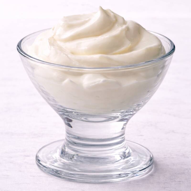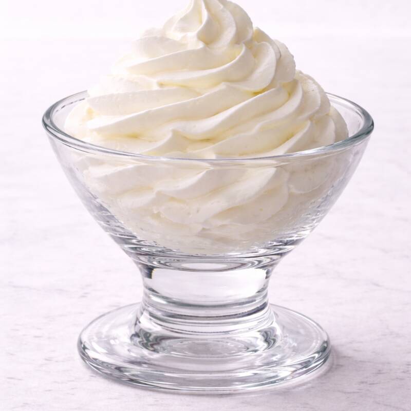 Porción de 60 gramos de crema batida con leche y azúcar.
