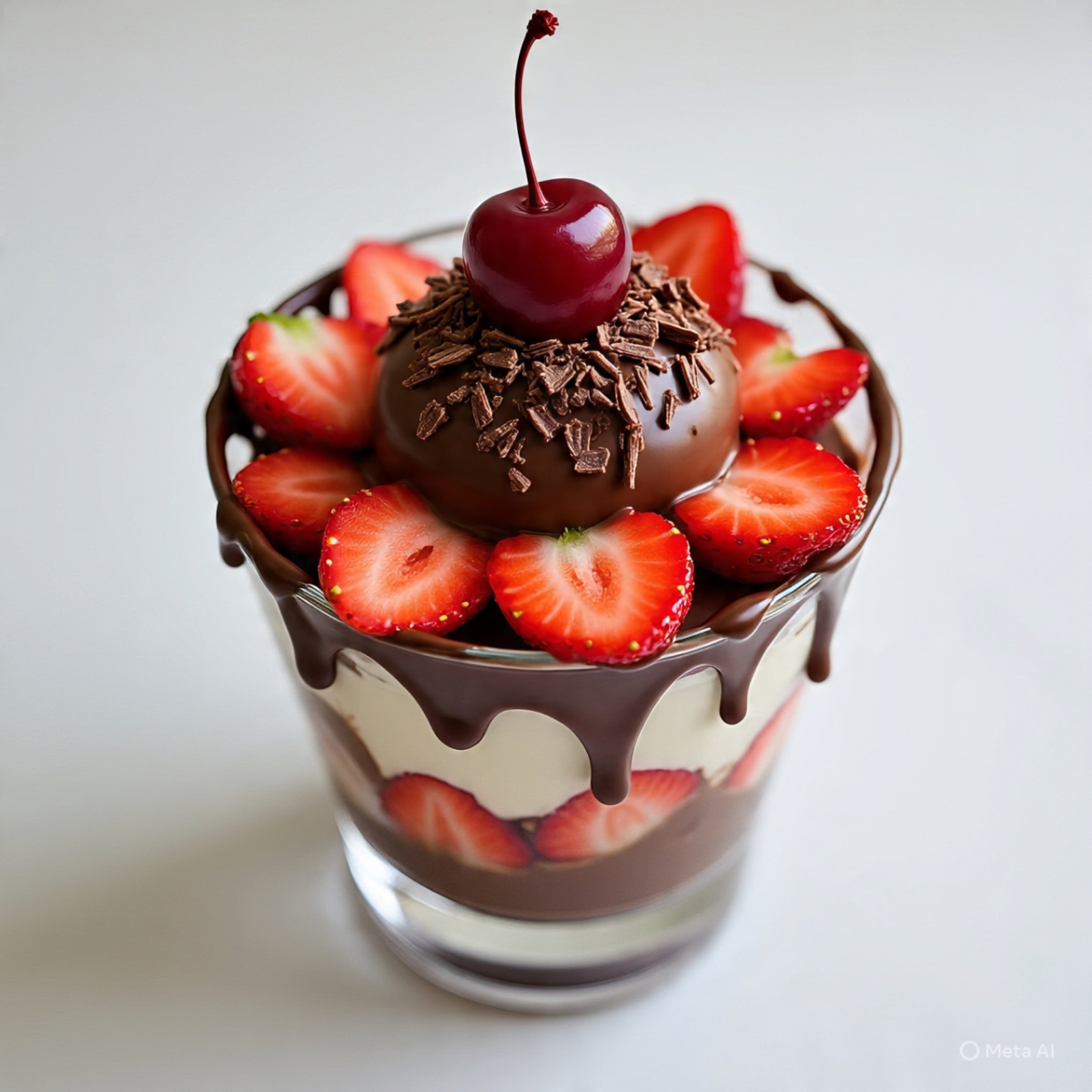 Vaso de 16 Oz, fresas con crema y chocolate, decorado con cereza