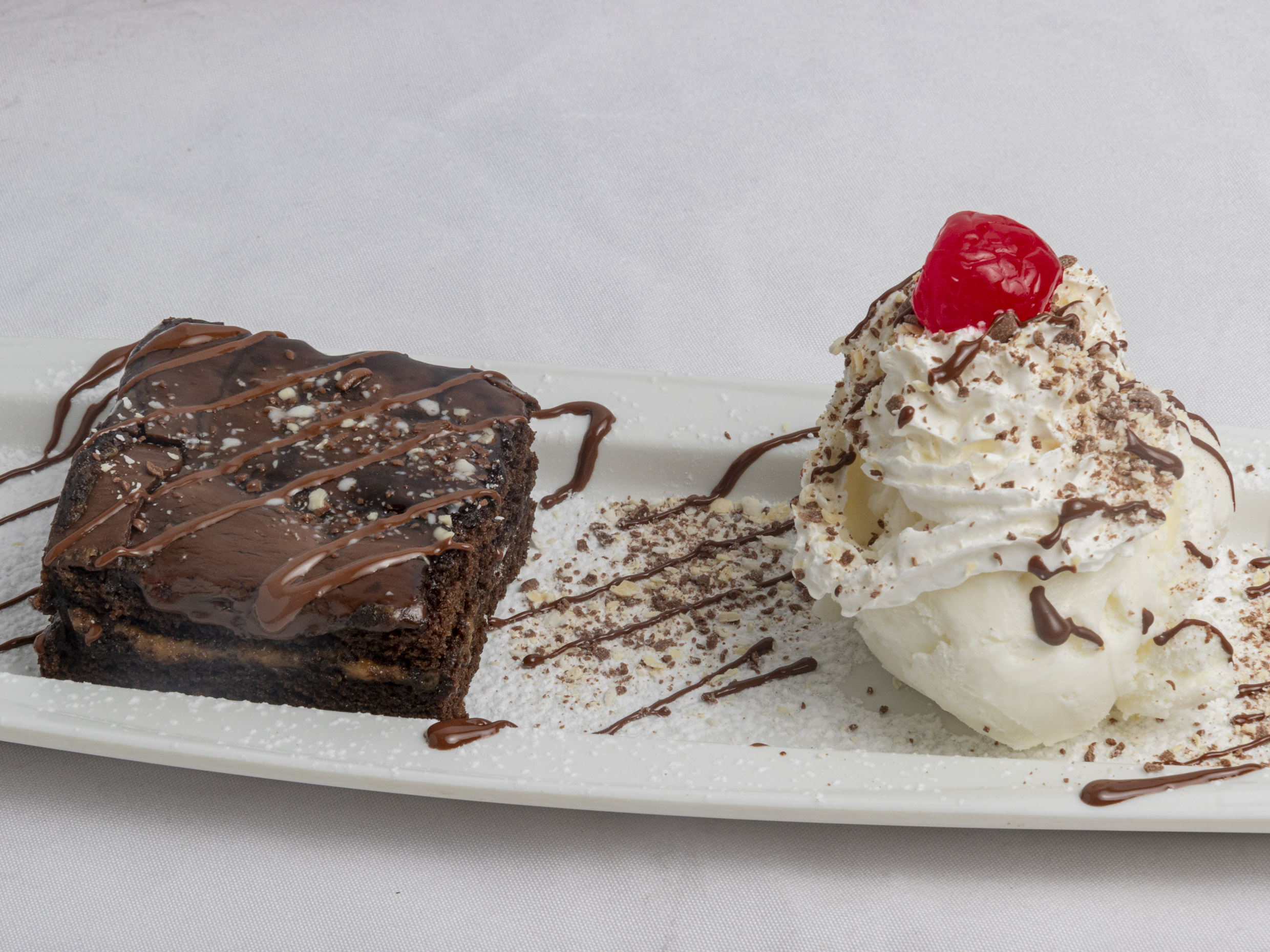 Helado de chocolate, con crema de chantilly y decoración