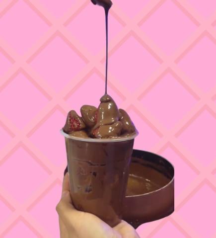 Fresas bañadas en chocolate, chantilly arriba y 1 topping clásico.