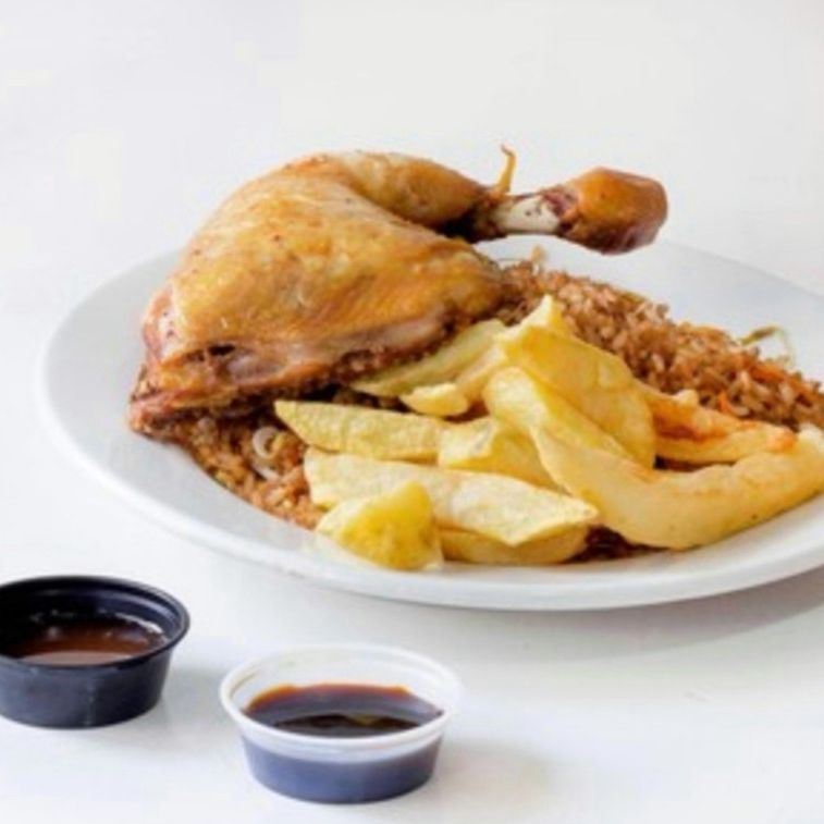 Porción de arroz(carné, jamón, camarón) pollo piena pernil , papas a la francesa