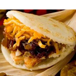 Arepa rellena de pollo, carne, chorizo, queso y hogo