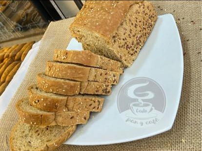 Pan relleno de ajonjolí, coco, maní, linaza, avena y uvas pasas.