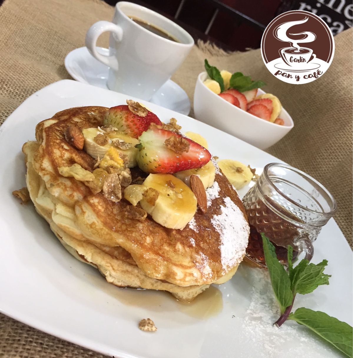 2 Pancakes tradicionales + porción de fruta + Bebida a elección.