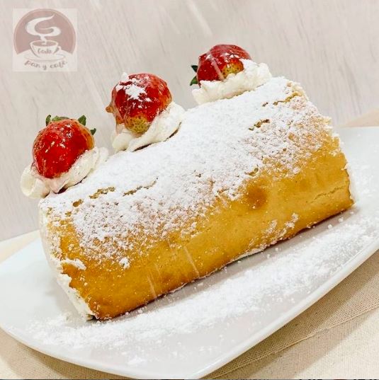 Bizcochuelo relleno de crema de leche batida y frutas frescas.