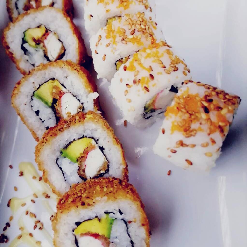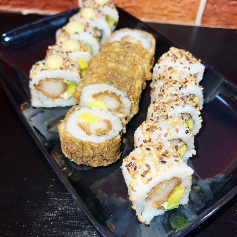 5 Tempura roll 5 california roll 5 camarón roll 5 filadelfia crunck 5 avocado roll 5 plátano roll.