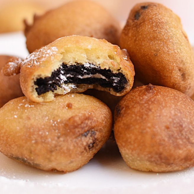 5 Anillos de calamar crocantes acompañado con salsa dulce.