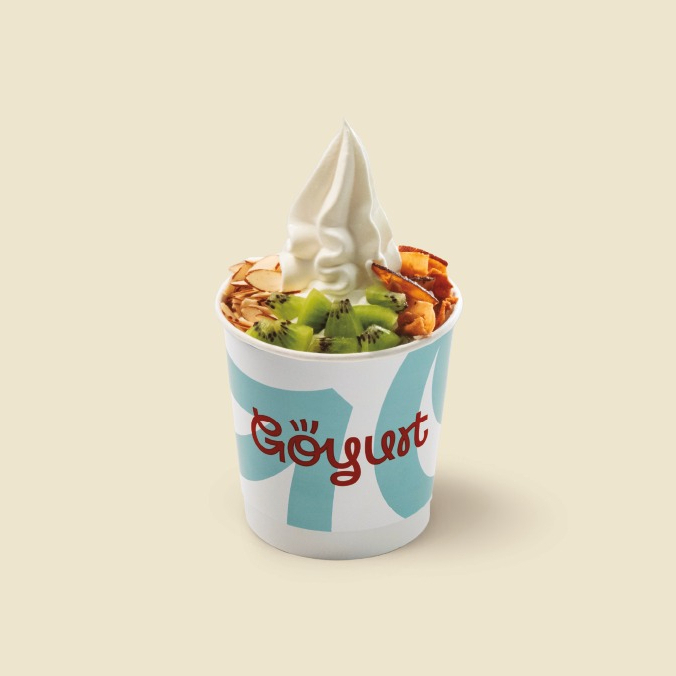 Go Classic de Yogurt Helado (150gr) con dos toppings y una salsa a elección.