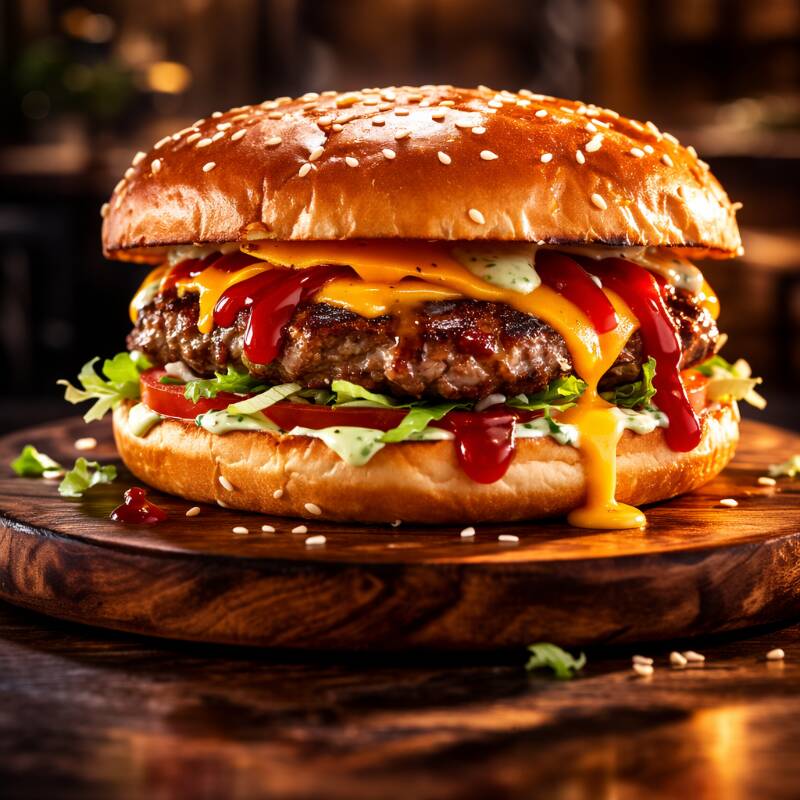 Carne de res de 150 gramos, cebolla grillé, tocineta, queso cheddar, tomate, lechuga y salsas de la casa.