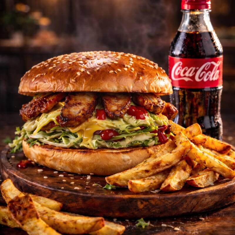 Hamburguesa RANCHERA*1 + Coca cola 250 ml*1 + Papas Rusticas a la Francesa*1