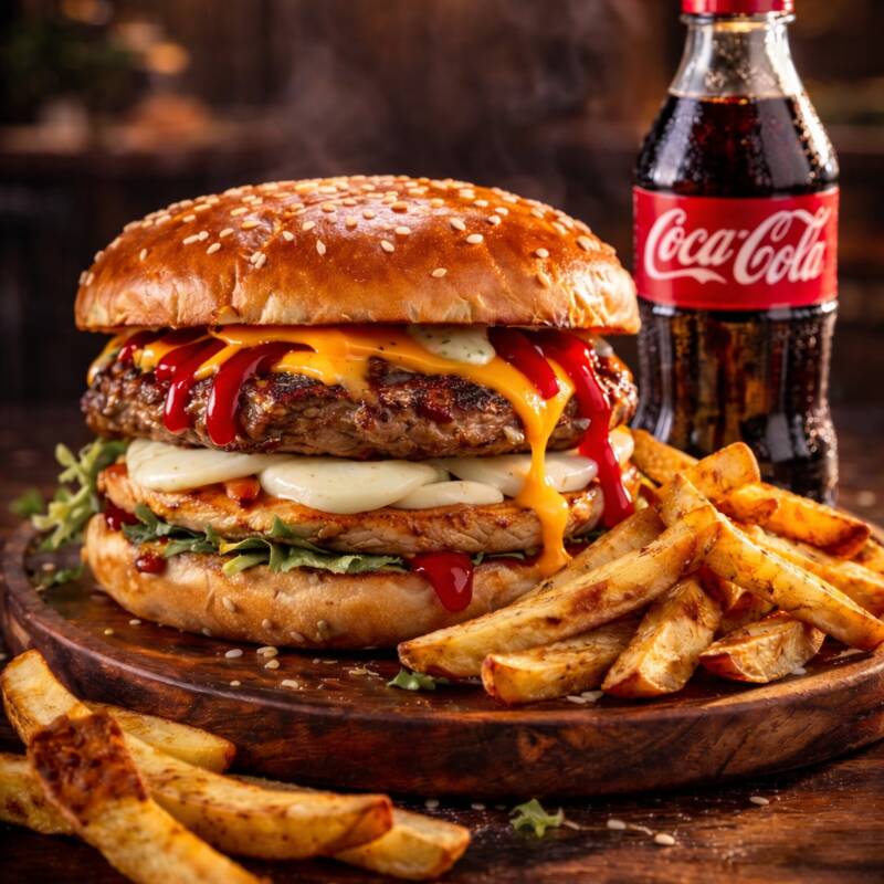 Hamburguesa Mixta*1 + Coca cola 250 ml*1 + Papas Rusticas a la Francesa*1