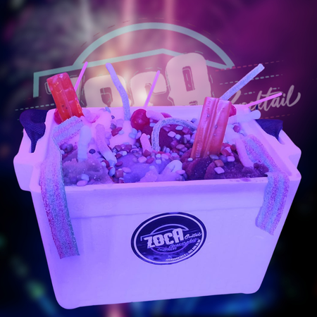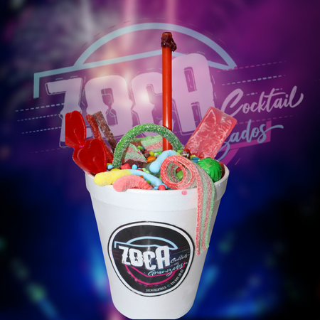 Granizado con LICOR. incluye gusanos, bombón, chicle y oka loka, tocineta ácida y barrilete ácido. Elige tus sabores favoritos (sandía, fresa, uva, smirnoff, chicle, mojito, manzana verde, sabor del mes, jagger).