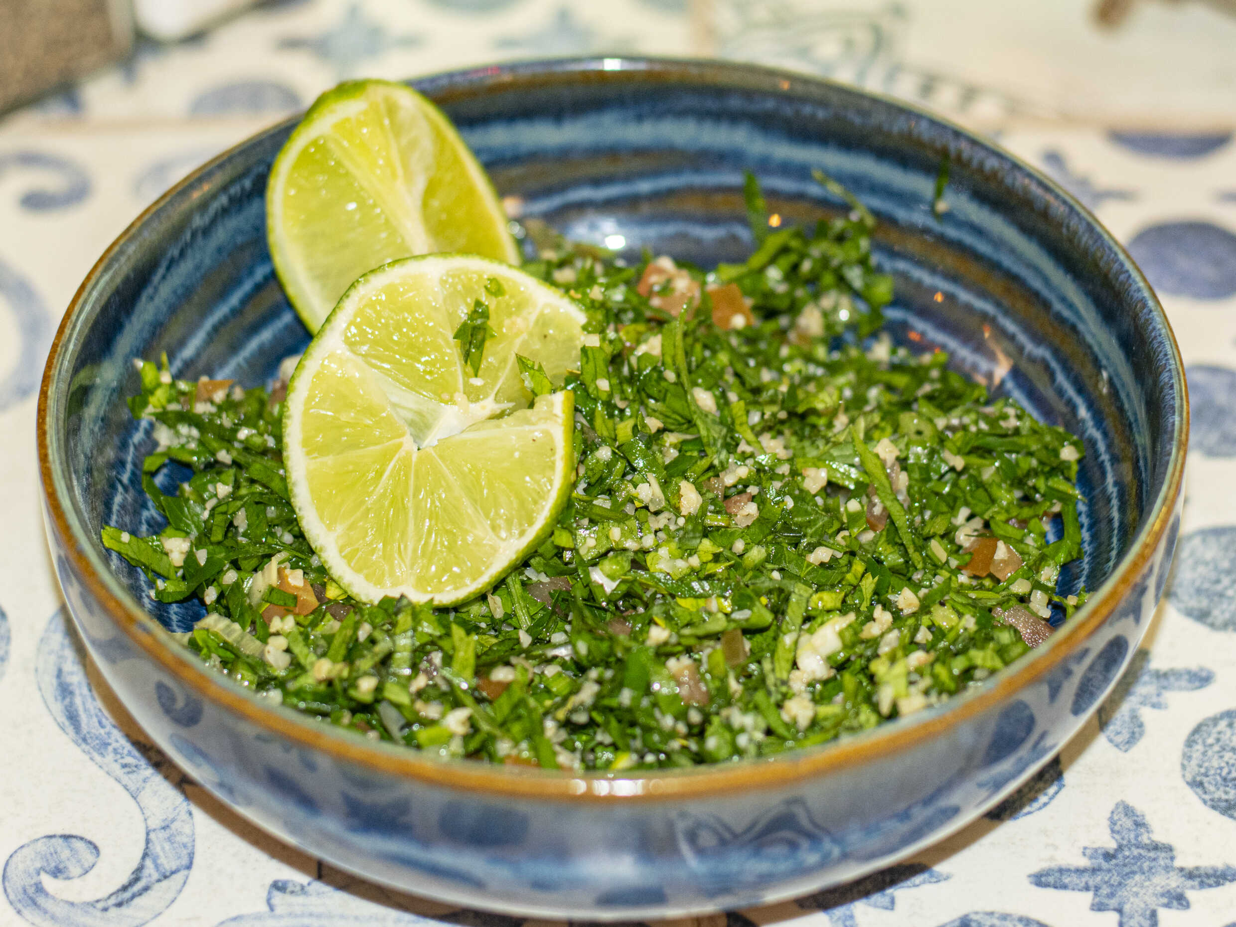 Bourgul (trigo), cebolla, tomate, perejil liso y hierbabuena.
