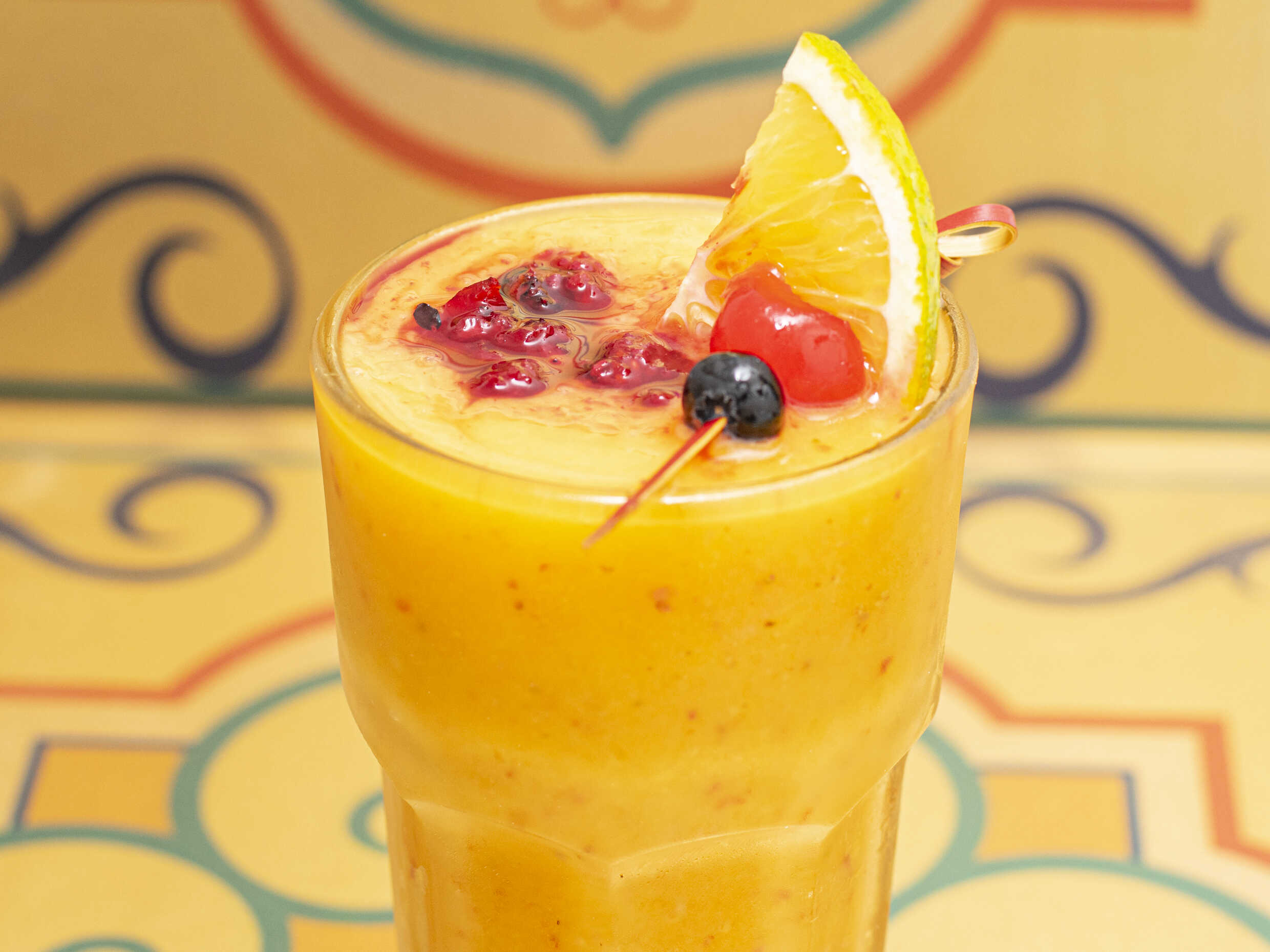 Zumo de naranja, fresa y mango.