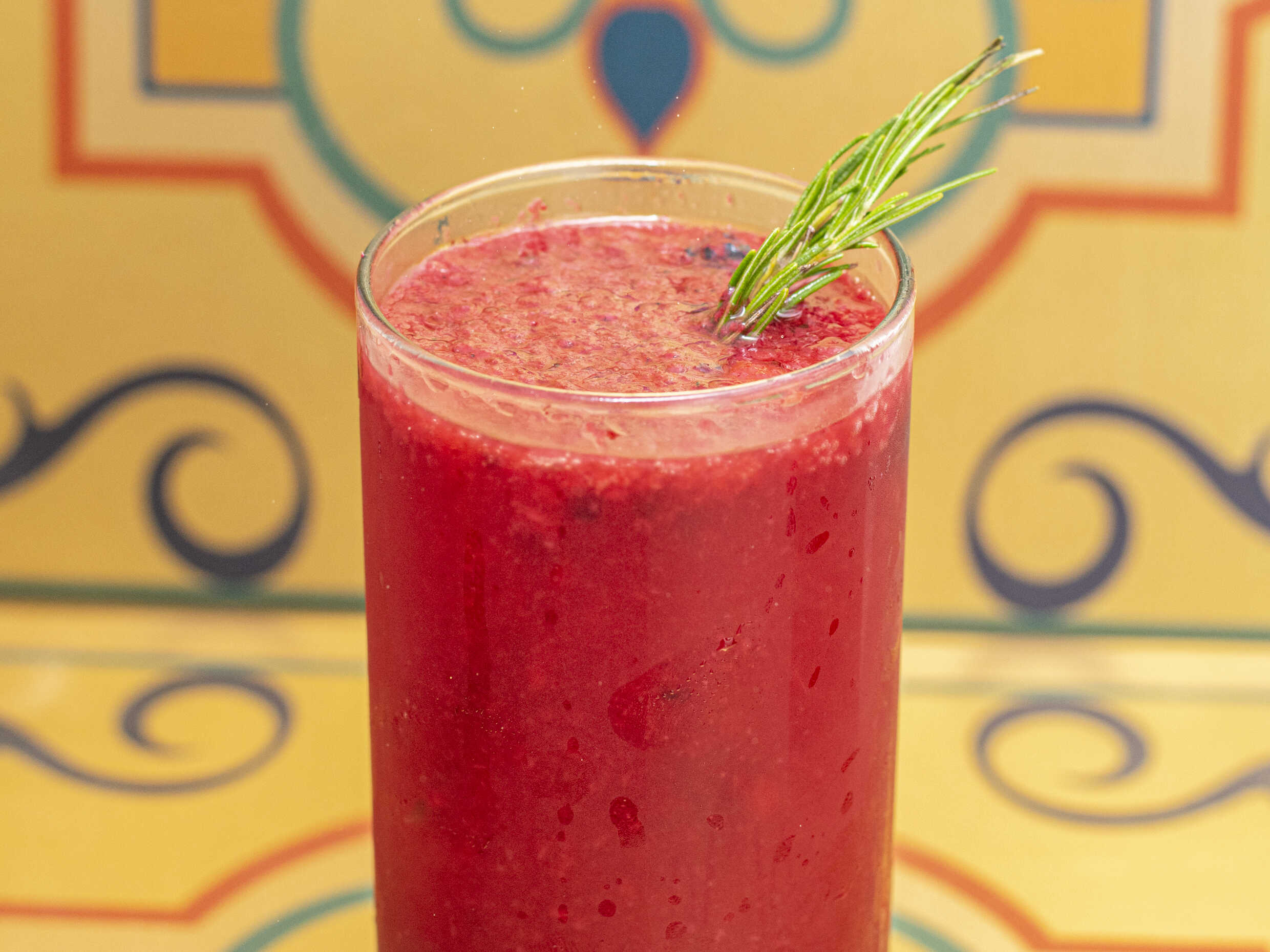 Fresa, cereza y arándanos en soda con romero.