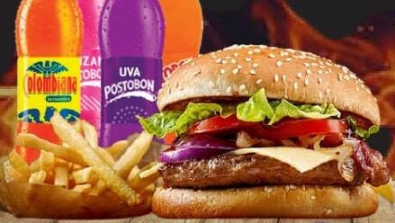 Papa francesa, Postobón 250 ml, y hamburguesa artesanal.