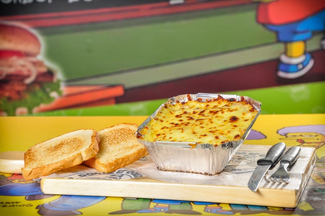 Carne molida, salsa BBQ, maíz tierno y queso.