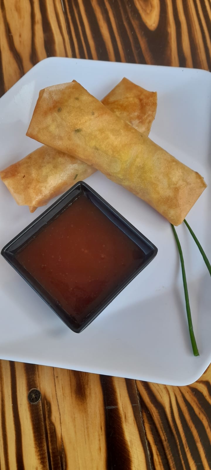 Aproximadamente 70 g cada una, relleno de vegetales más salsa agridulce aparte.