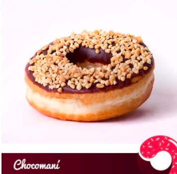 Donut cubierta de chocolate y rebosada de maní triturado.