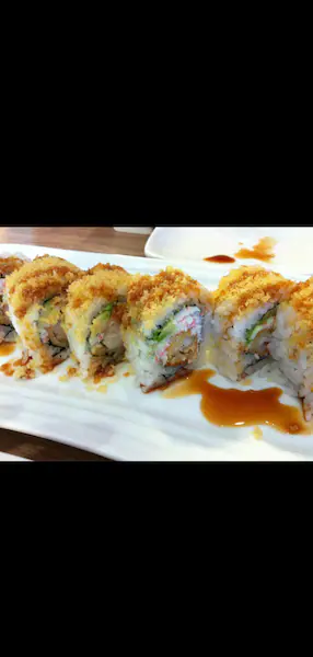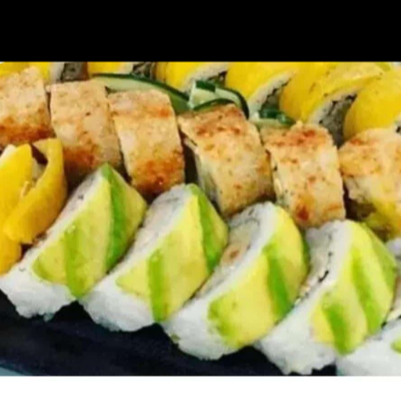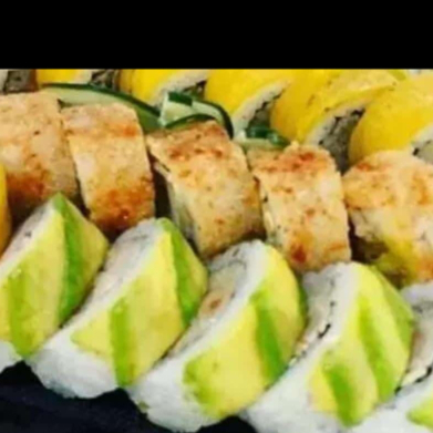 Salmon, tilapia, palmito de cangrejo, pepino, wakame, vegetales, tempura, aguacate y salsa chile dulce.